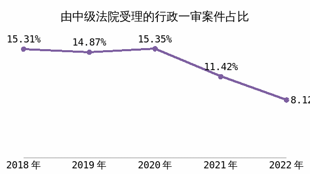 2.行政案件纵向结构趋好。2022年,全省法院新收以省、市级政府为单独被告的行政一审案件653件,仅占一审收案总数的2.5%。随着四级法院审级职能定位改革深化,中级法院新收行政一审案件2087件,占全省法院新收行政一审案件的8.12%,同比下降3.3个百分点。原告坚持选择起诉较高级别的行政机关以提升案件级别管辖的情况较以往有所减少,当事人行使行政诉权趋向理性。行政案件收案较为集中在中、高级法院的“倒金字塔”分布现象有所缓解。