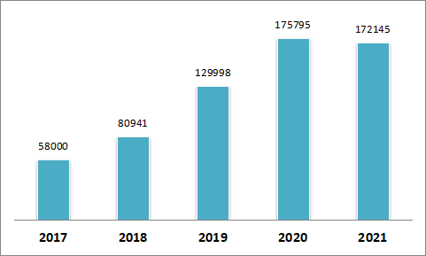 图2:近五年成人小说网 新收知识产权民事一审案件数量