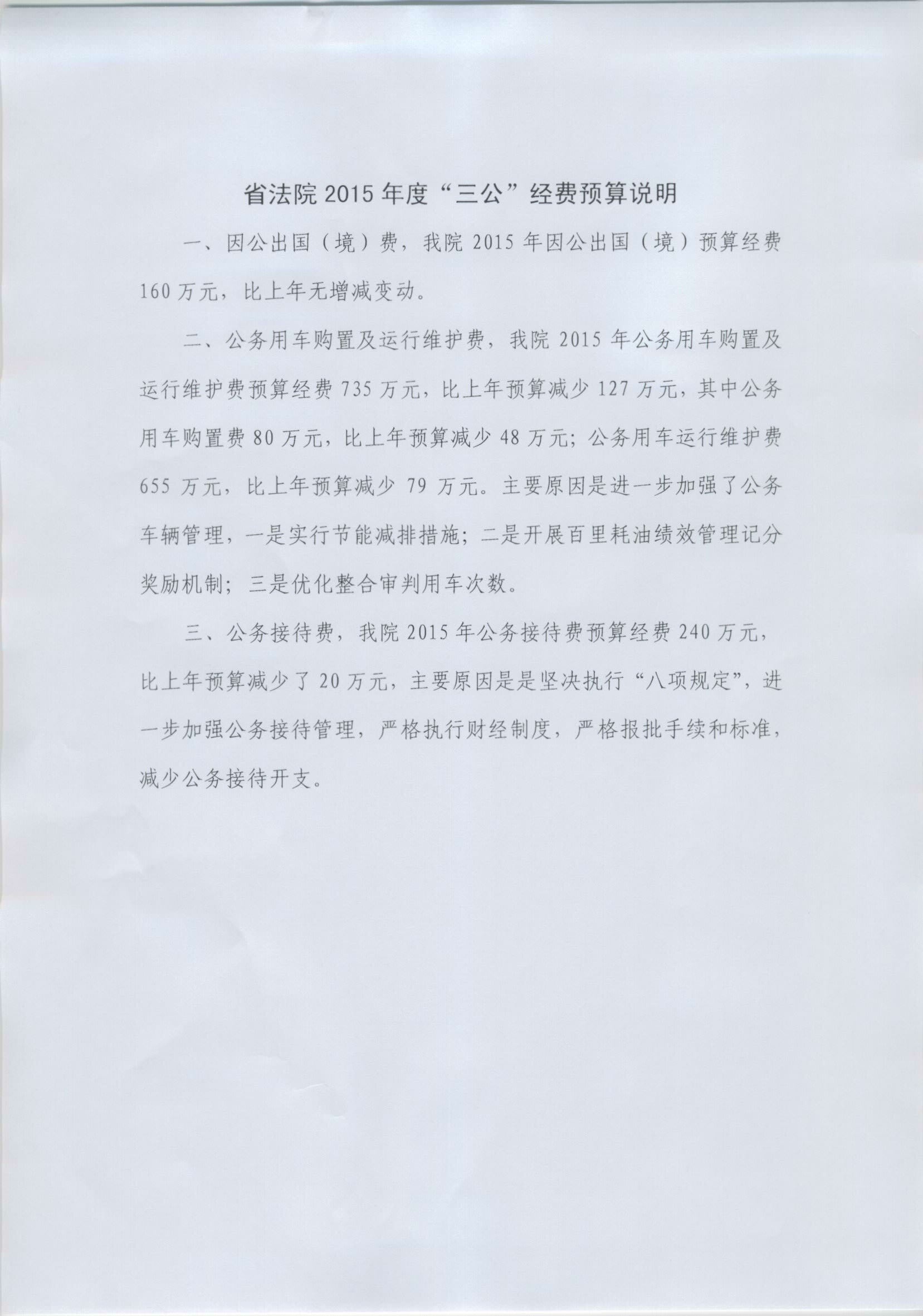 2015年省法院三公经费预算说明