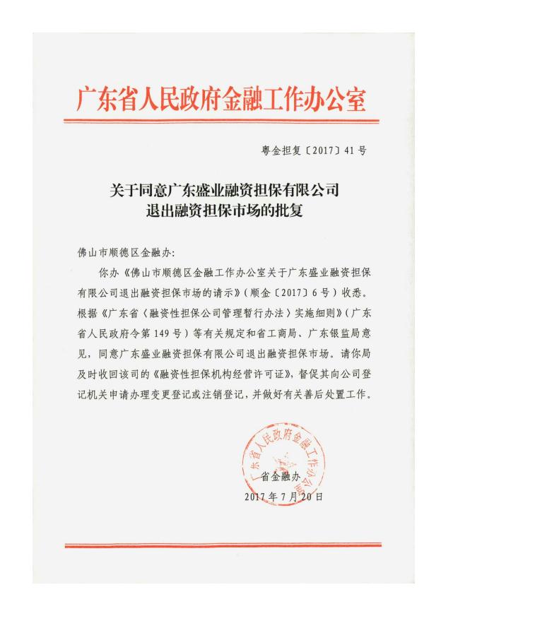 关于变更《广东融资性担保机构法人机构名单》的通知