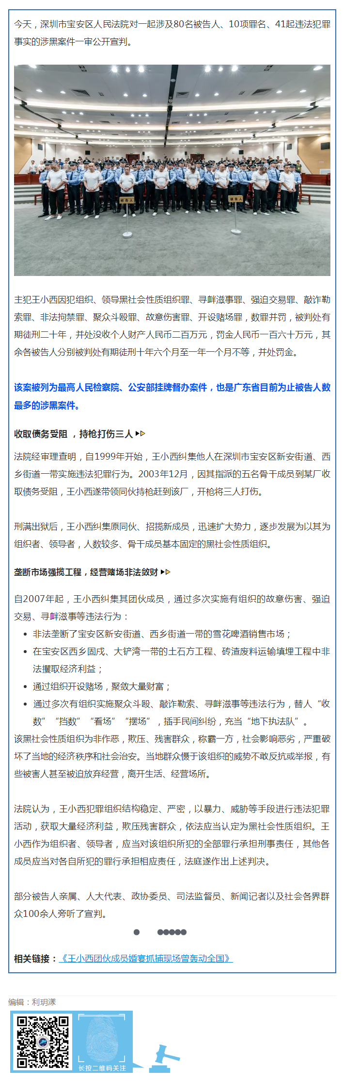 深圳宝安区法院公开宣判一起重点督办涉黑案件