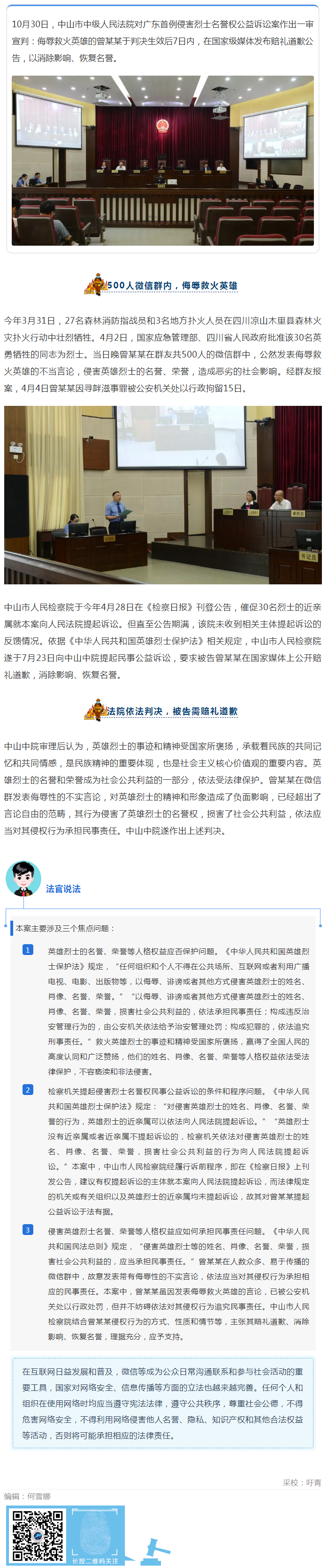 中山中院对广东首例侵害烈士名誉权公益诉讼案作出一审宣判