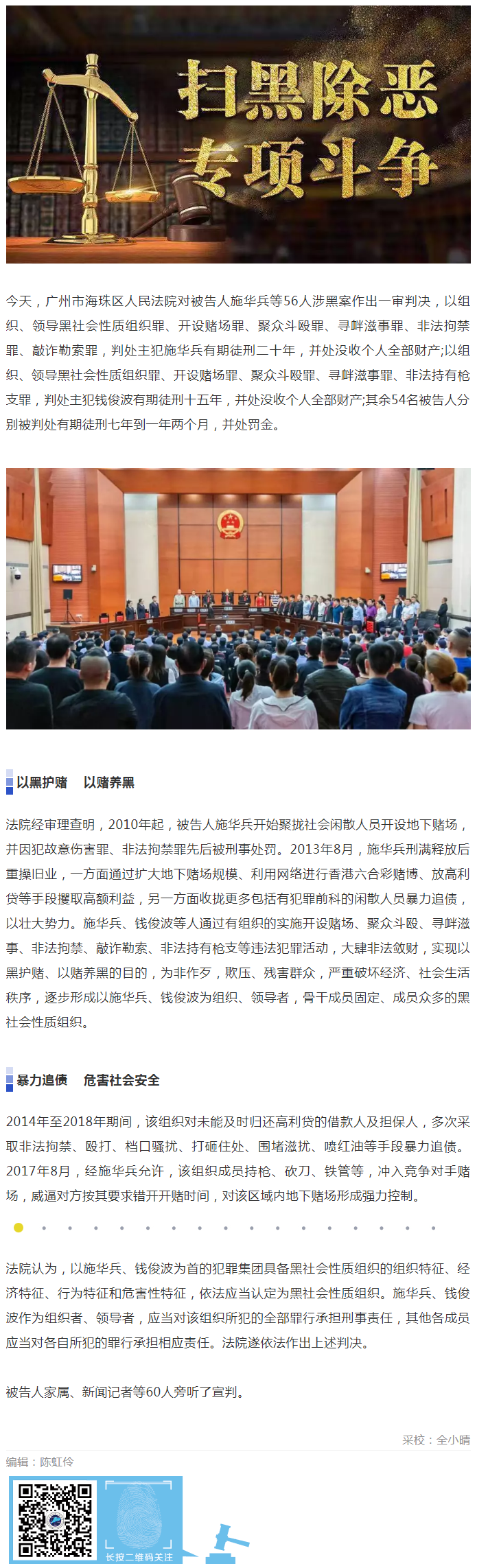 海珠法院对施华兵等56人涉黑案作出一审宣判