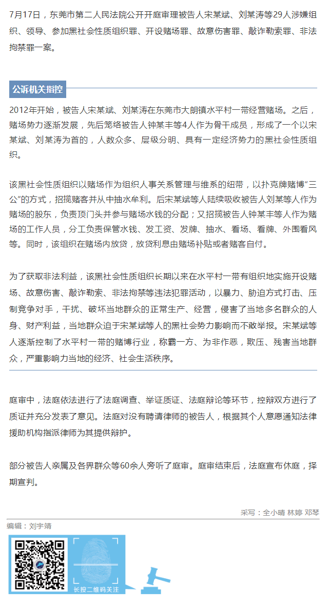 【扫黑除恶】经营赌场发迹称霸一方,东莞一黑社会团伙过堂受审